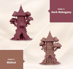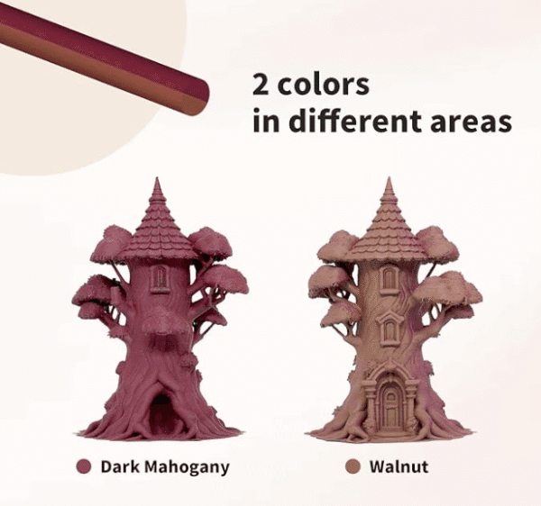 Filamento PLA de doble color——Nuestro ácido poliláctico coextruido de madera puede imprimir piezas de gran volumen y muy detalladas con un gran equilibrio entre resistencia e impresión: sin deformación, gran adherencia, sin olor y amplia compatibilidad.