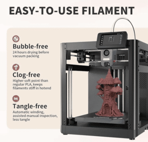 Materia prima fabricada en Estados Unidos: solo el ácido poliláctico puro Natureworks Ingeo produce este filamento para una experiencia de impresión 3D suave. Esta enrollado en un carrete de cartón.
