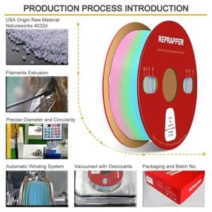 - Hermoso filamento PLA de seda arcoíris: nuestro brillante brillo multicolor de seda puede imprimir grandes volúmenes y piezas altamente detalladas con un gran equilibrio entre resistencia e impresión: sin deformación, gran adherencia y sin olor.