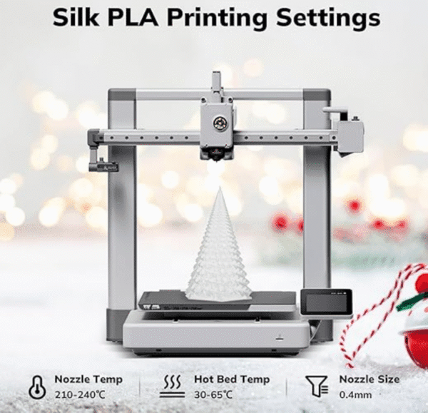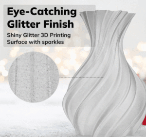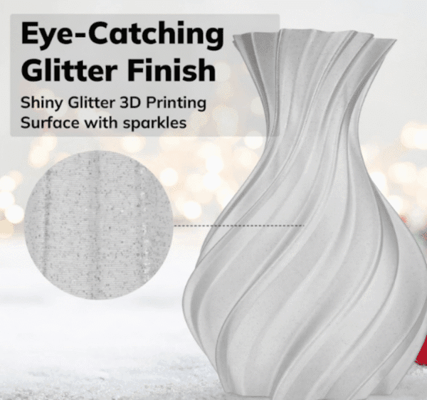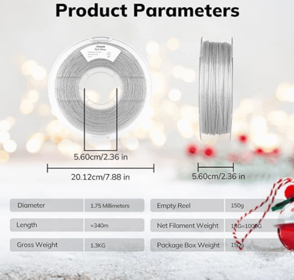 Filamento de ácido poliláctico brillante con purpurina: el filamento de ácido poliláctico de alta calidad con plata brillante, brilla de acuerdo con diferente iluminación, te da una experiencia más llamativa, especialmente para imprimir decoraciones de Navidad y de otras celebraciones.