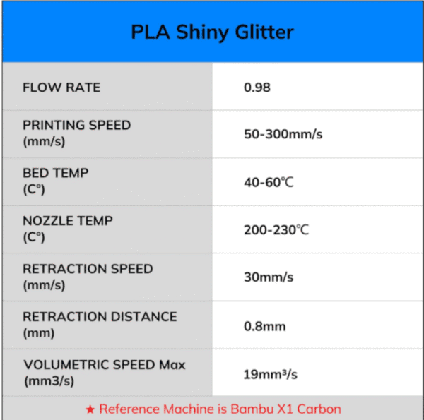 Calidad prémium: filamento Amolen de ácido poliláctico con purpurina, buen moldeado, gran resistencia, sin burbujas, sin atascos, sin deformación, se funde bien, se alimenta suave y constantemente, especificación de brillo añadida, se recomiendan boquillas 0.6mm endurecidas de alta resistencia para evitar mayor desgaste en las boquillas de latón.